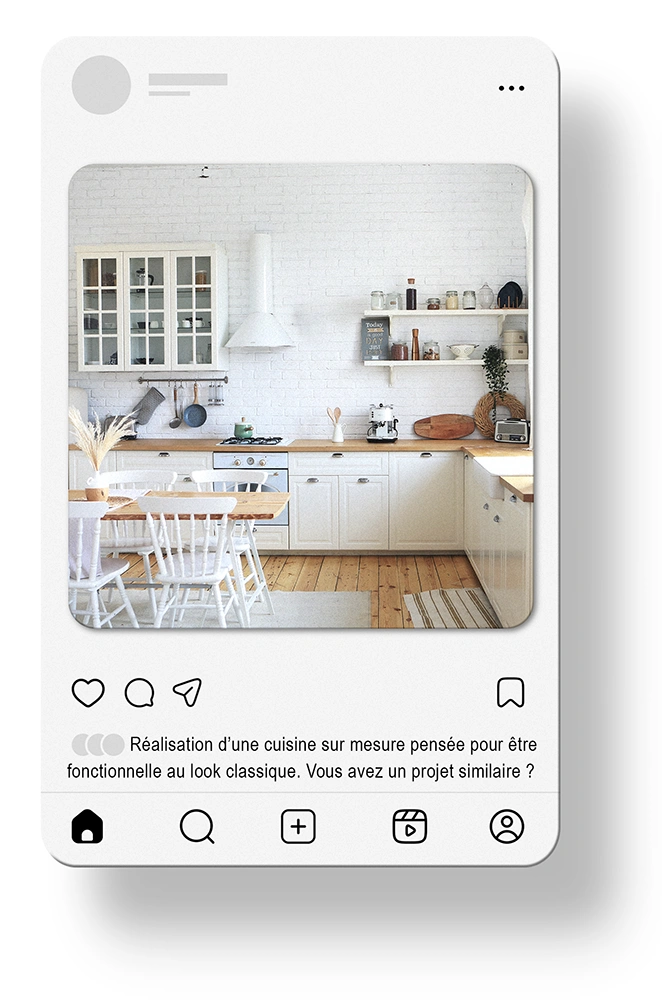 Comme beaucoup d’artisans, il n’a pas le temps. Résultat : soit il ne publie rien, soit il poste 2 ou 3 photos avec quelques mots rapides. « Cuisine aménagée sur mesure avec électroménager. » C’est peu engageant et peu efficace.